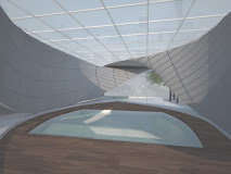 This project explores the idea of a building as an evolving concrete ribbon. The ribbon splits and tapers in certain areas to become porous, allow for light, create circulation, etc. Whereas concrete is usually perceived as heavy and rigid, here it is designed to seem lighter and more fluid. Studying ruled surfaces and the relationship of lines to planes to volumes informed the curvature of the ribbon. In some areas, it operates as more of a solid extrusion, and in others, more like a thin plane.